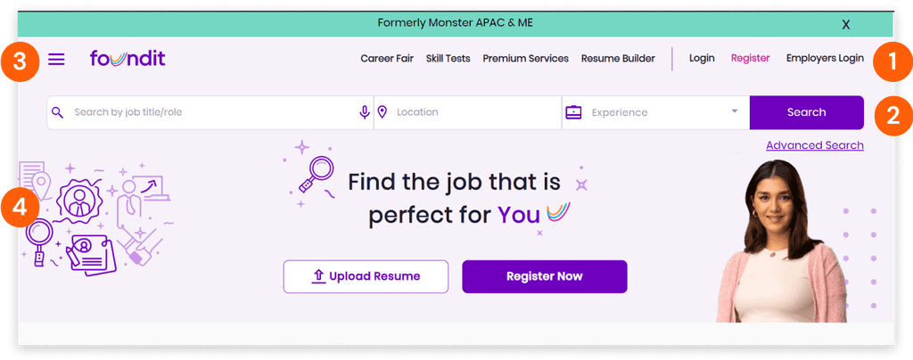 Design a visually appealing and user-friendly homepage for https:// www.foundit.in that will attract potential job seekers and showcase job opportunities to them.